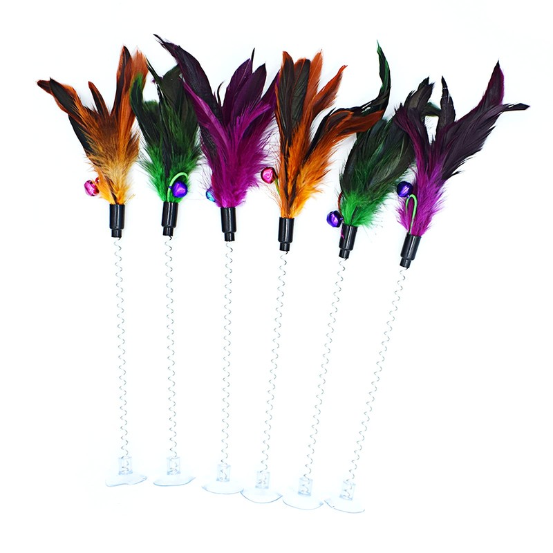 - PACKAGE INCLUDES - 6 spring sticks with feathers, 6 suction cups and 6 double-sided tapes