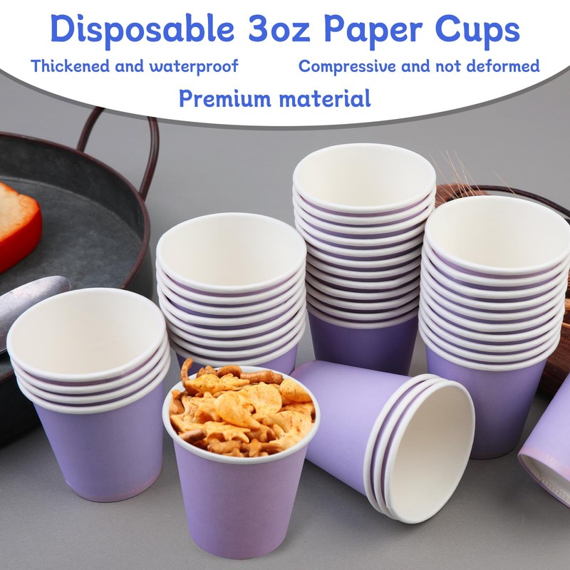Iuuidu 3 oz Paper Cups, 100 Pack Purple Bathroom Paper Cups, 3 oz Mouthwash Cups Small Paper Cups, Bath Paper Cups Rinse Cups for Home, Office, Wedding, Travel