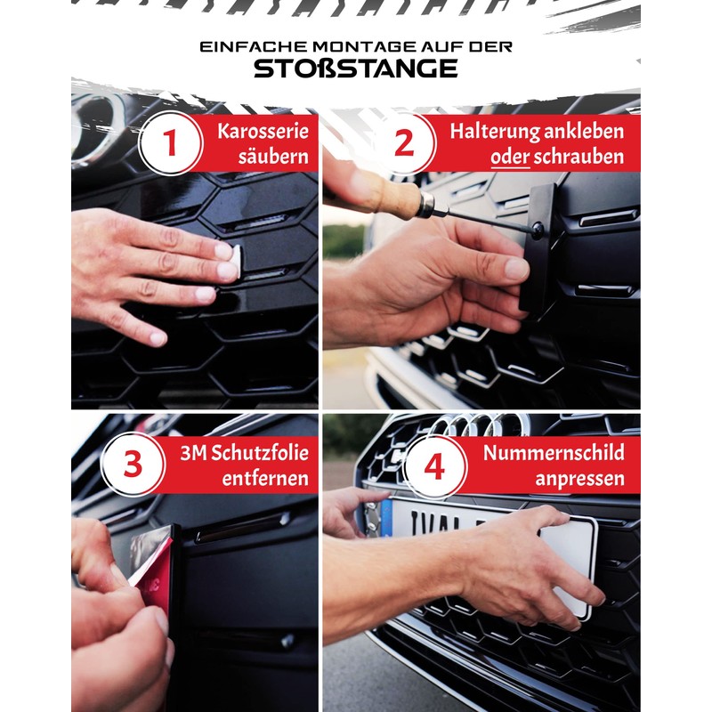 - Safe and easy to use: our innovative car number plate holder impresses with its strong neodymium magnets, VHB 3M high-performance adhesive tape and form-fitting anti-slip holder