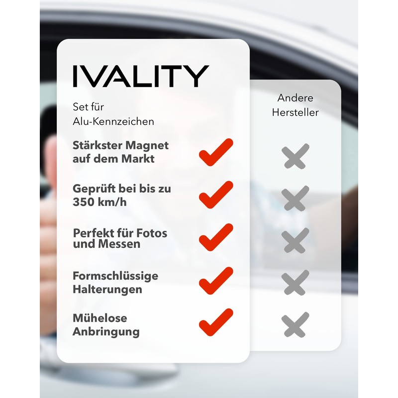 - ✅ TESTED: The magnetic number plate holders from Ivality are safe and last up to 350 km/h. For Austria, Germany & Switzerland. Ideal for changing number plates