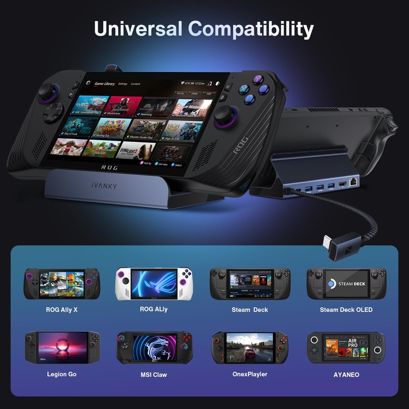 iVANKY 8-in-1 ROG Ally Dock with 100W PD Charger, Steam Deck/Legion Go Dockin...