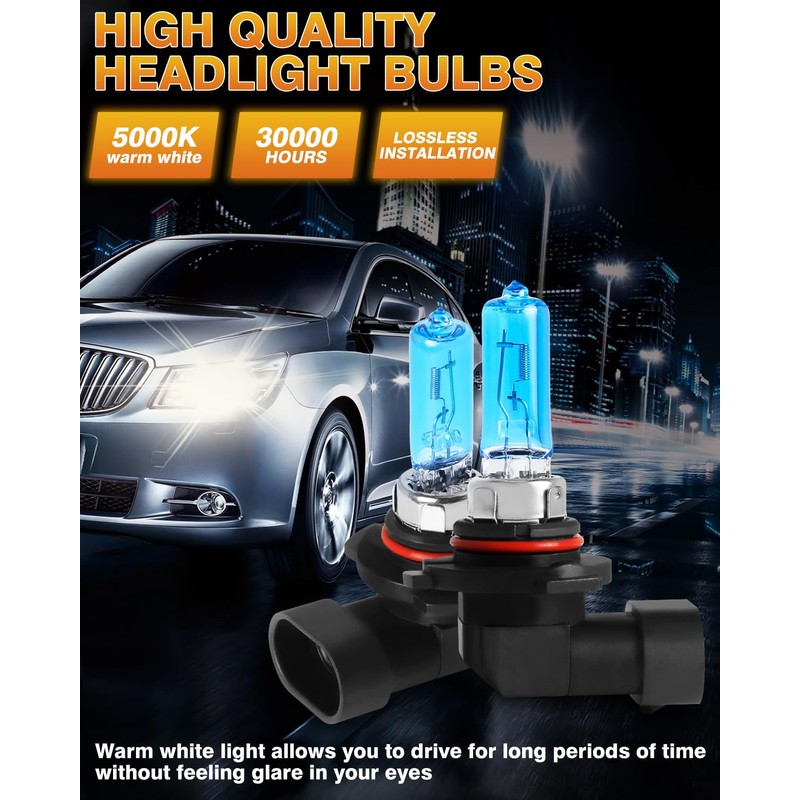 - 300% BRIGHTER THAN HALOGENSFit for Toyota rav4 headlight bulbs high and low beam 9005 9006 headlight bulbs. Upgraded halogen headlight bulbs with higher quality materials can increase the brightness by 300%, 5000K warm white light allows you to drive for long periods of time without feeling harsh.