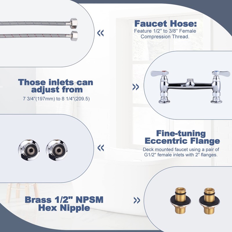 iVIGA Commercial Sink Faucet with 12” Swivel Spout & Supply Lines, 8" Center Deck Mount Kitchen Faucet, Dual Handles Brass Utility Sink Faucet for Laundry Room Restaurant Compartment Sink, Polish