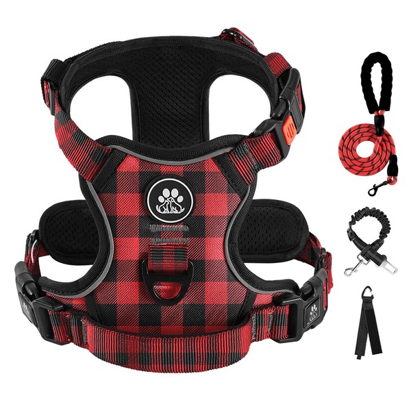 IVY&LANE No Pull Dog Harness with Leash Set, Reflective No Choke Pet Vest,Adjustable Oxford Dog Vest Harness with Easy Control Handle for Small Dogs (Checkered Red,S)