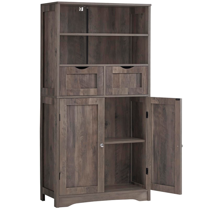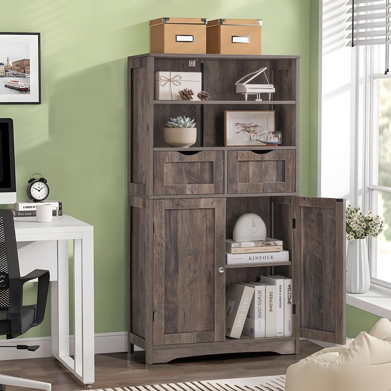 Iwell Iwell Tall Storage Cabinet with 2 Drawers & Adjustable Shelves, Bathroom Cabinet with Doors, Cupboard, Floor Cabinet for Living Room, Bedroom, Entryway, Rustic Gray, 11.8'D*23.6'W*49.6'H