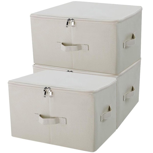- Good Materials made---This storage box is made of breathable linen and thick PP plastic board inside. Top unzips, 3-side zipper open with 2 zipperlocks. Convinient for take out/ put in items using the 3 handles on sides, you are easily to slide it in any directions.