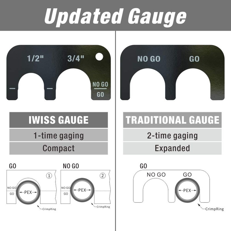 IWISS Angle PEX Crimping Tools Combo Kits for 1/2" & 3/4" Pex Crimp Rings with Go/No-Go Gauge with PEX Pipe Cutter Suits for All US F1807 Standards Copper Rings