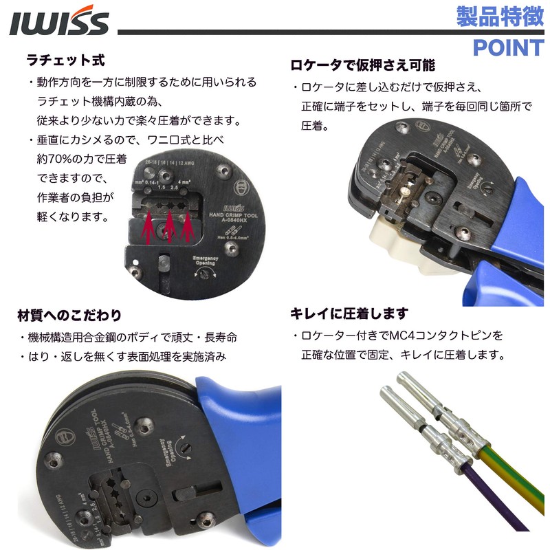 - Crimping capacity: 0.04-0.06 inch (0.14-1.5 mm2, 0.5-2.5 mm2, 1.5-4.0 mm2, 0.05 mm2, 0.05 mm2