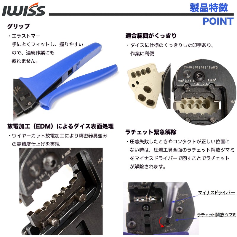 - FEATURES: 1 Unique new ratchet feature allows for variable movement, faster tightening with lighter force than ever before; 2 EDM processing for dice resilience coefficient, hardness 3-locator for precise terminals