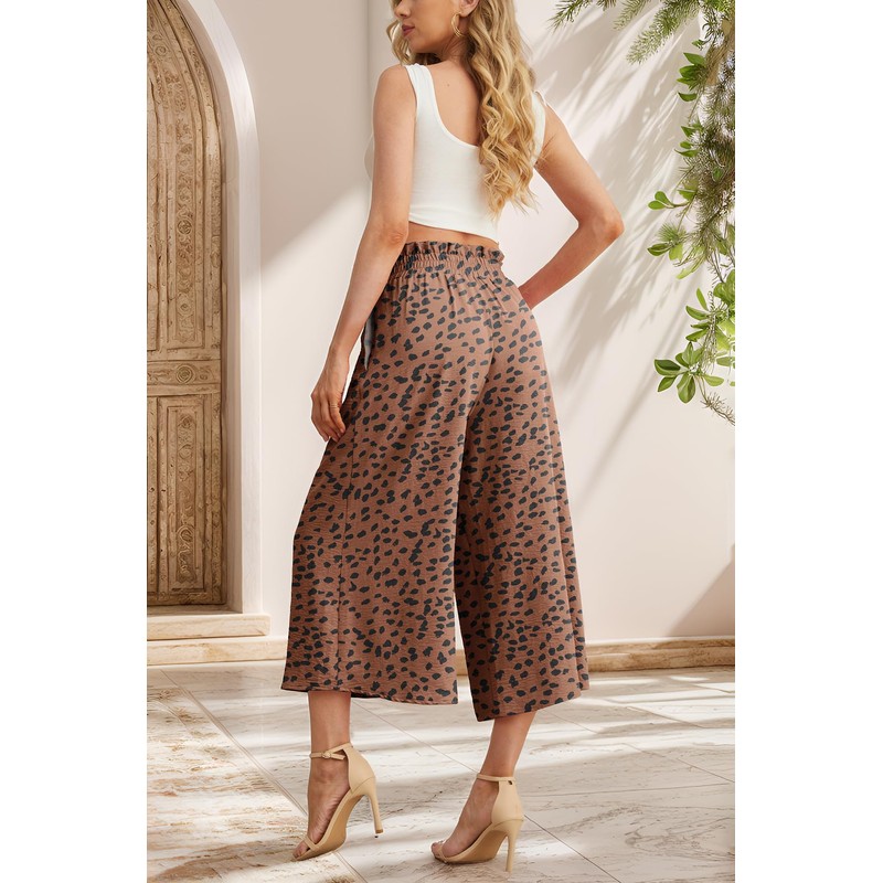 IWOLLENCE Women Flowy Loose Wide Leg Pant Summer Beach Casual Trousers high Waist Adjustable Knot Business Work Casual Pants LD Coffee Medium