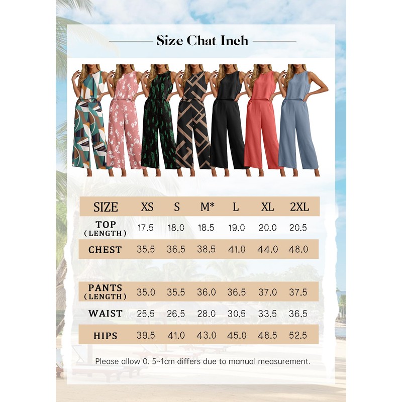 - Features - This summer 2 piece outfit features a sleevelesscrop top, high waist, round neck,wide-leg cropped pants, a wide waistband, the button-back feature infuses a unique style element.