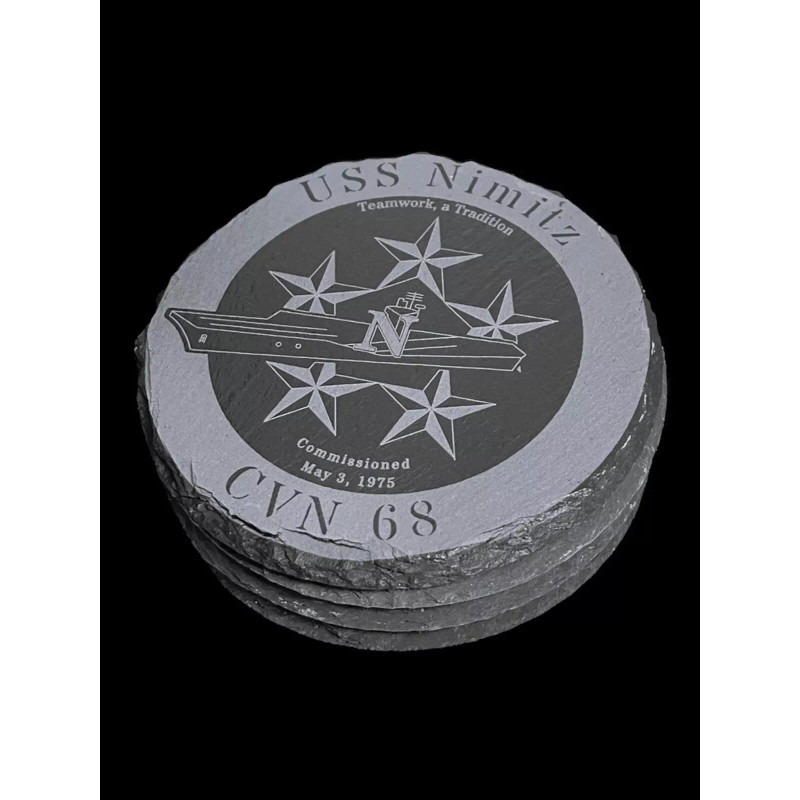 iWoodMD USS Nimitz CVN 68 Slate Coaster Set (of 4) US Navy Aircraft Carrier