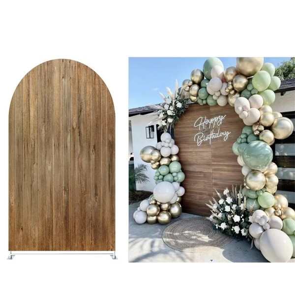 Iydamc Wood Arched Backdrop 4x7ft Stretchy Background Arch Wooden Wall Covers for Birthday Party Decorations Wedding Banquet Bridal Shower Banner NO-406