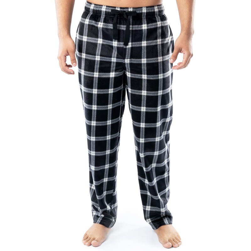 IZOD mens Micro Sueded Fleece Sleep Pajama Pant, Black Plaid, Large
