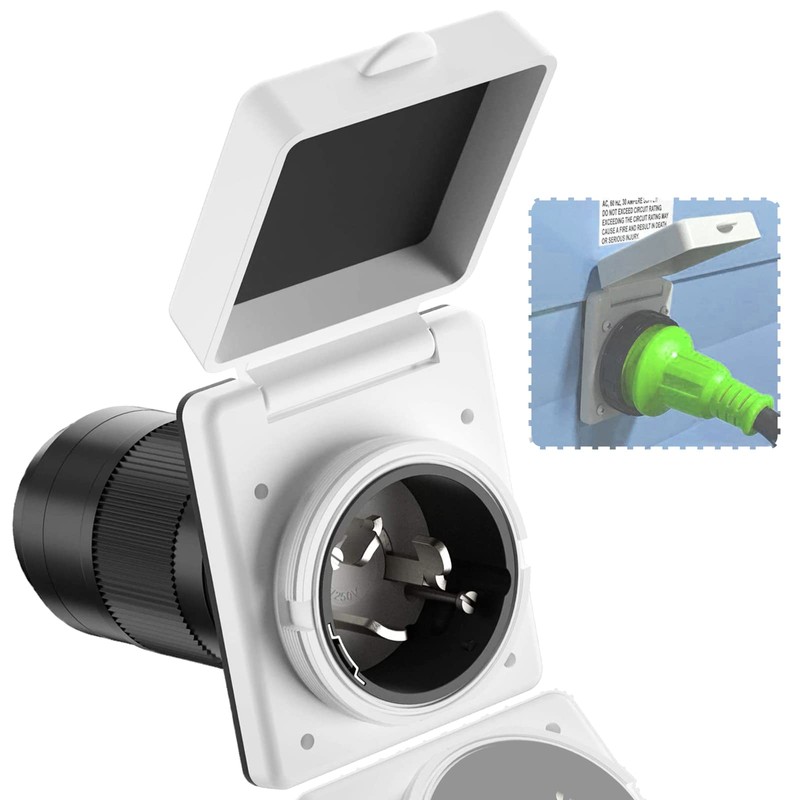 • Material:The shell of our RV plug is made of sturdy and durable glass filled polyester,which has good corrosion resistance and UV stability,waterproof and dustproof,and is not affected by weather when the lid is closed,ETL Listed