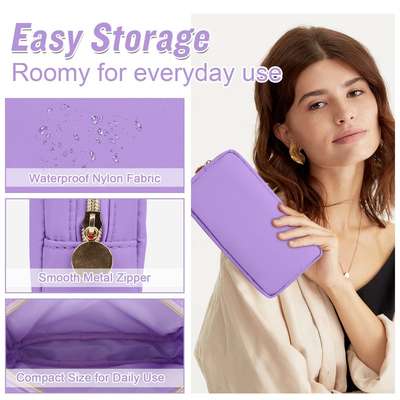 izuzta Organizador de bolsa de maquillaje de nailon, bonita bolsa de viaje para cosméticos, Púrpura, Pequeño