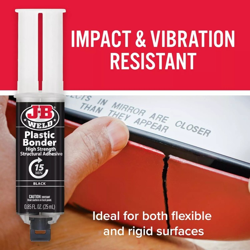 J-B Weld Plastic Bonder Body Panel Adhesive and Gap Filler Syringe, Black, 25 ml