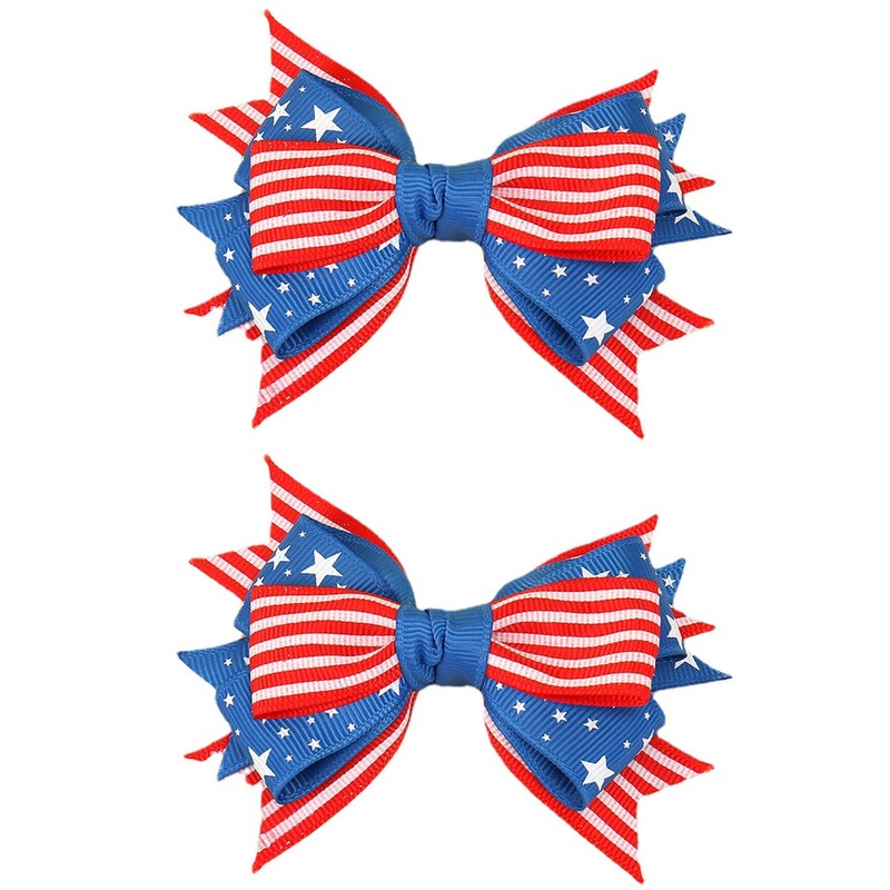 J.H LIVING 2Pcs American Flag Bow Girls Patriotic Hair Accessories July 4th Independence Day Crocodile Hair Clips (#F)
