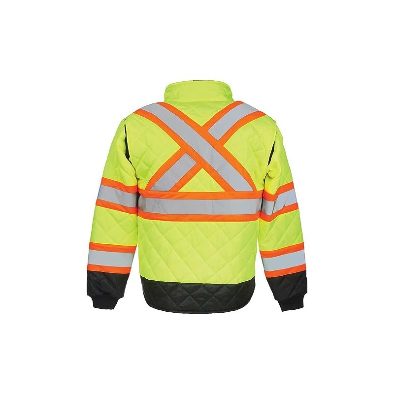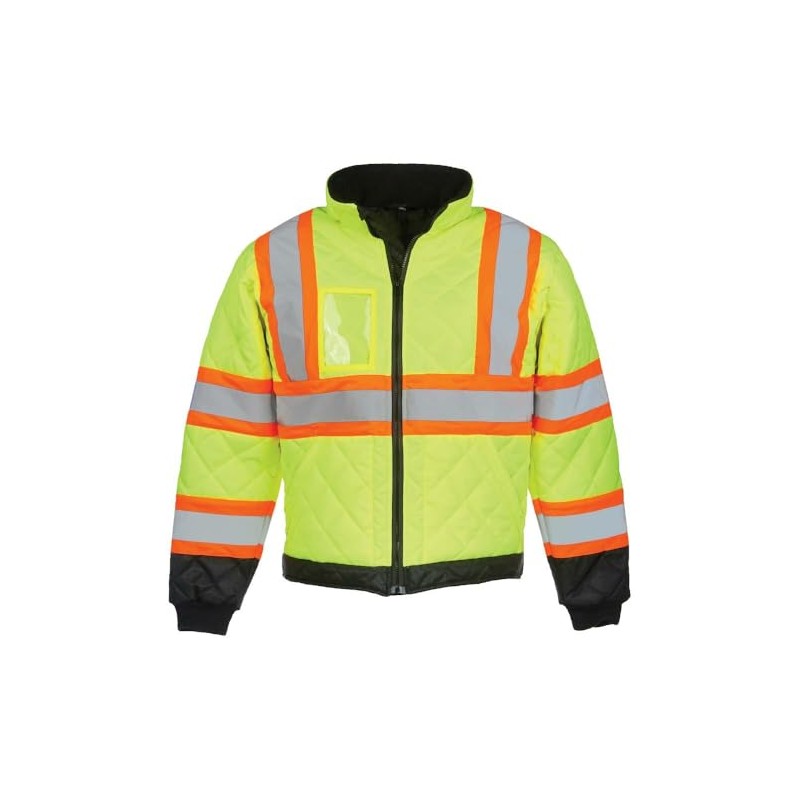 - Hi Vis Jacket: This safety jackets for men and women are ANSI type R class 3 compliant to keep you safe. Each work jacket has fleeced lined collar and elastic wrist cuffs to help minimize the cold. For further visibility reflective jacket has reflective tape on each arm and on the front goes over the shoulders to an X-back pattern.