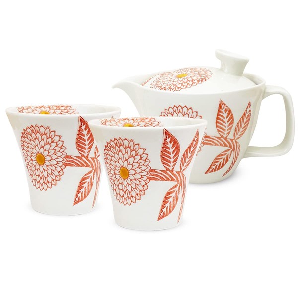 J-kitchens J-kitchens Isaama Kiln Teapot Set, Hasami Ware (Teapot, Pair Teacup Set, 8.5 fl oz (240 ml), 4.5 fl oz (130 ml), For 1 to 2 People, Dahlia Red, S