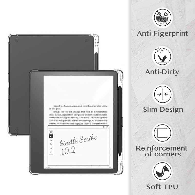 - 【Practical Design】 Our clear thin back case for Kindle Scribe has 4 Strengthened corners, Shock-absorbing corners & raised besels offer maximum protection for your E-reader which protect against everyday impact. It makes the kindle easy to hold and adds just the right amount of grip