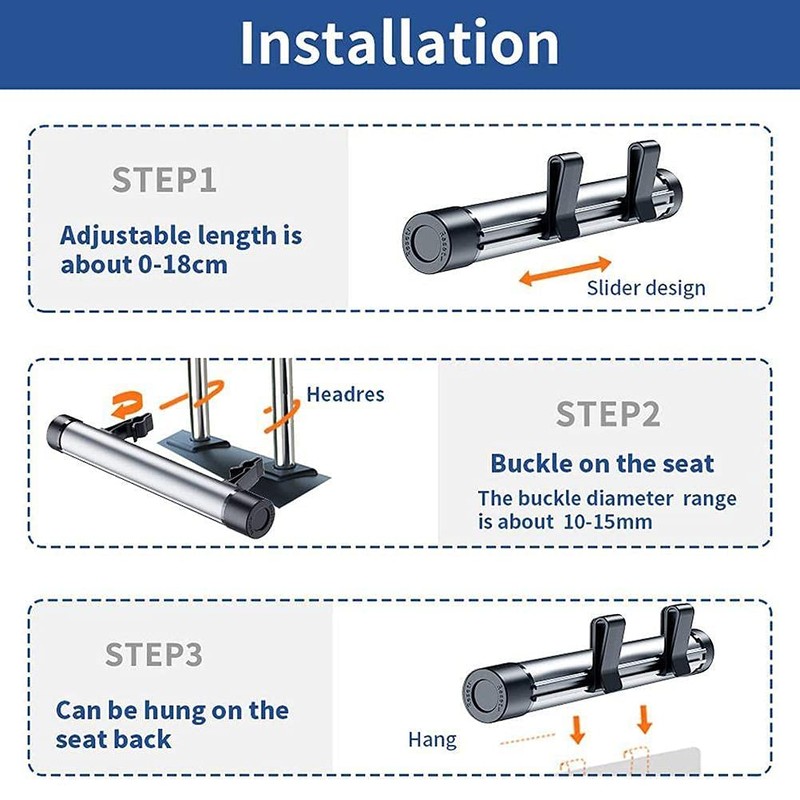- 4, Two hanging methods: cushion and backrest The rail design applies to most car chairs and net bags. Unscrew the bracket to the left and put it in the garbage bag