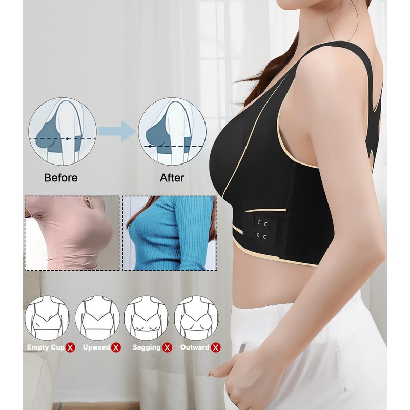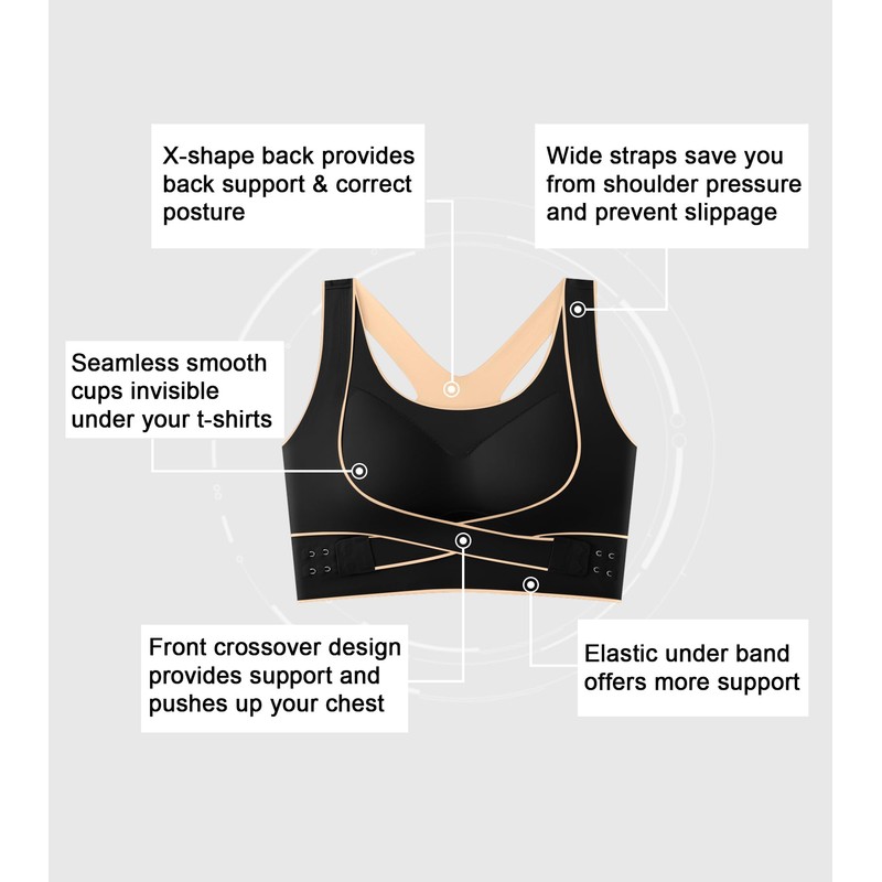 - POSTURE CORRECTOR BRA - Front cross lifting straps with a smooth back design provide good support, pulling your shoulders back gently can slightly relieve back and shoulder pain. It keeps you a straight and streamlined silhouette and improves your posture for more confidence