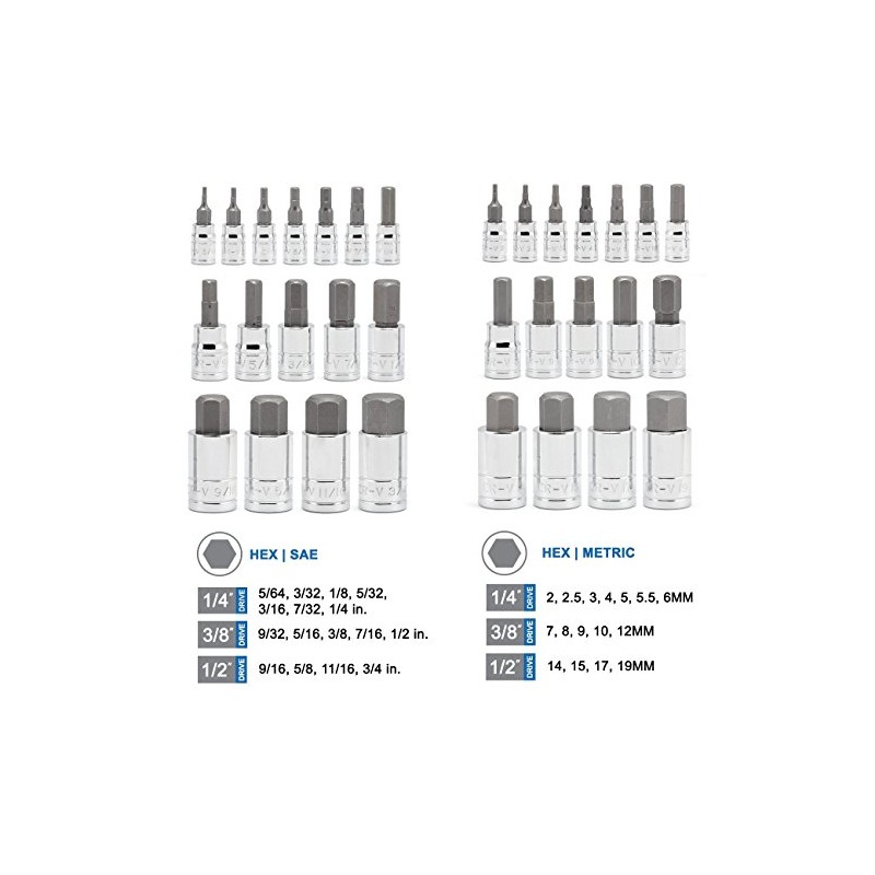 J&R Quality Tools Hex Allen Bit Socket Set, SAE and Metric, S2 Steel |32-Piece Set