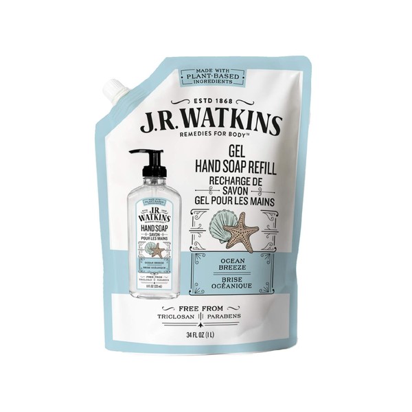 J.R. WATKINS OCEAN BREEZE HAND SOAP REFILL POUCH 34oz/1 Liter
