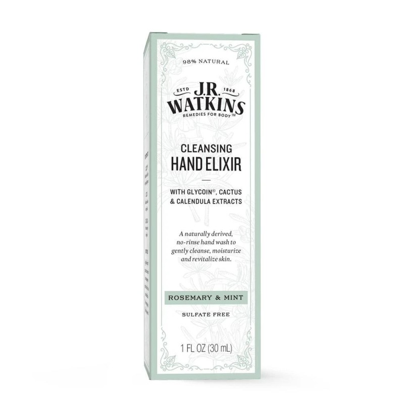Gentle Alcohol-Based Hand Cleanser: J. R. Watkins Hand Elixir's alcohol-based hand cleanser is a convenient way to clean, moisturize, and revitalize your skin for softer, smoother hands all day long.