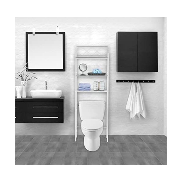 - THREE OPEN SHELVES: Store Your Important Products at Eye Level with this Toilet Space Saver. This Contemporary Bathroom Storage Uses Open Shelving So That You Can Check Your Supplies with One Glance.