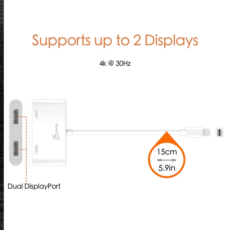 - FULL HD: j5create's dual displayport adapter supports resolutions up to 4k @ 30Hz