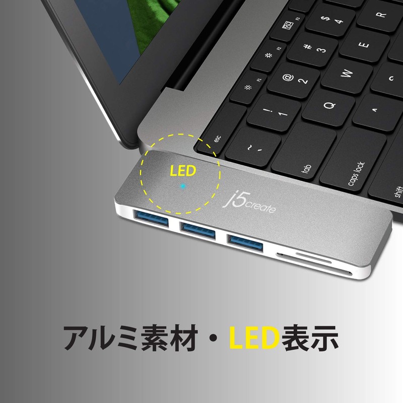 j5create USB-C 5 in 1 Mini Docking Station Multi Hub [3 x USB3.0, SD, TF Card Reader] Ultra Slim Design Aluminum Housing Compatible with MacBook Pro, MacBook Air, M1, M2, Pro, Max, Surface Book,