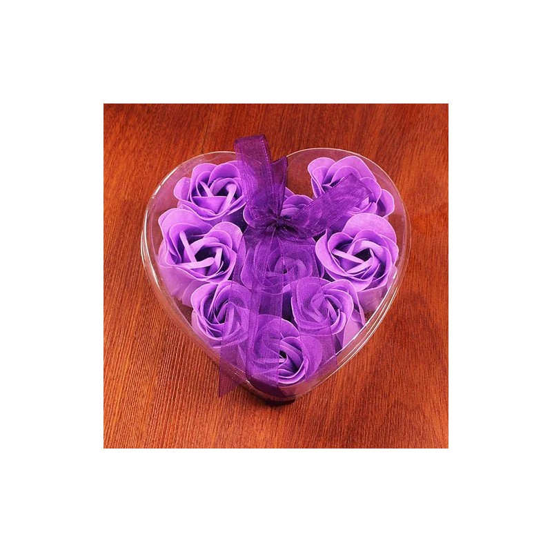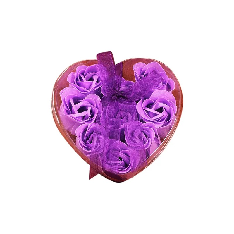 Caja de regalo en forma de corazón con 9 rosas en forma de corazón.