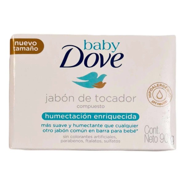 El Jabón en Barra Baby Dove Humectación Enriquecida ayuda a reponer la humectación y los nutrientes esenciales de la piel del bebé que se pierden durante el baño. Probado por oftalmólogos, dermatólogos y pediatras, su fórmula de pH neutro es hipoalergénica, libre de lágrimas y con una delicada fragancia creada especialmente para la piel del bebé. Disfruta de un baño más feliz con Dove.
