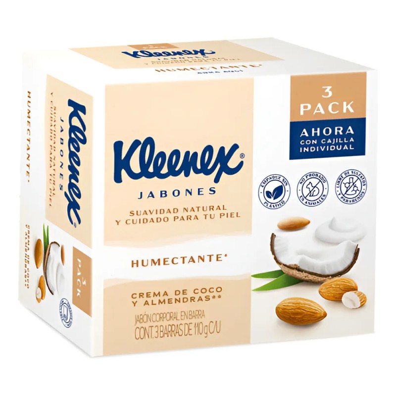 Jabones En Barra Kleenex Crema de Coco y Almendras 110g 3 Piezas - Producto Original de Alta Calidad, Entrega Rápida y Segura, Garantía Incluida