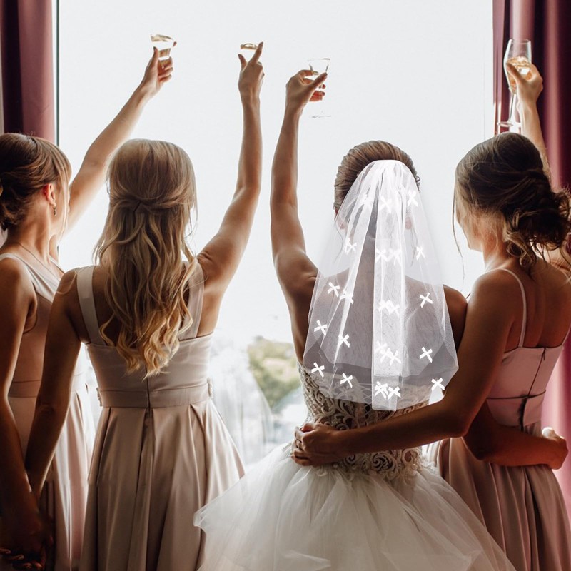 Jaciya Wedding Veil with Romantic Bows | Bachelorette Party Decorations | White Double-Layer Veil