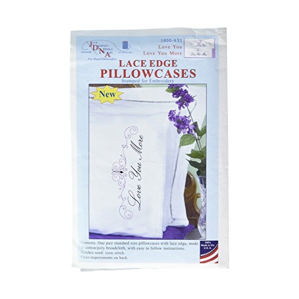 Jack Dempsey 1800-633 Stamped Pillowcases with Lace Edge (2 Pack), Love You Love You More, White