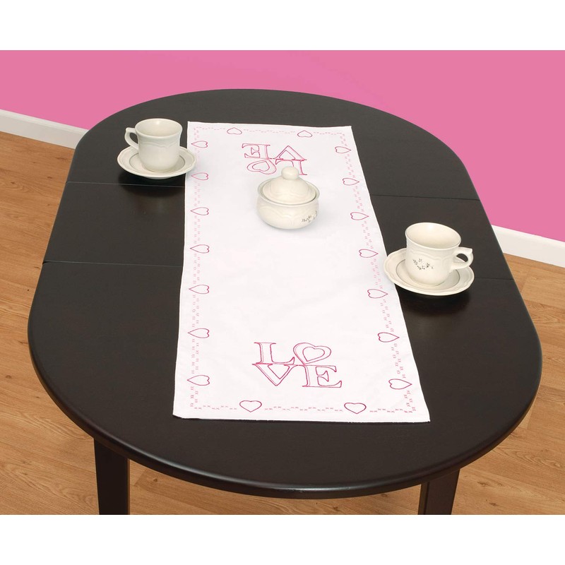 Jack Dempsey Needle Art 560871 Love Table Runner, white
