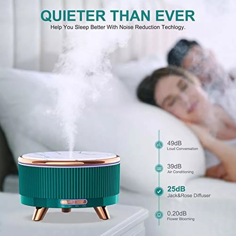 Bajo nivel de ruido y sueño mejor: tecnología de reducción de ruido adoptada, el difusor ultrasónico funciona silenciosamente sin sonidos de goteo de agua, crea un ambiente relajante y relajante para la relajación, el aprendizaje, el trabajo y el sueño sin interrupciones | Difusor de 500 ml, ideal para habitaciones grandes: el área de cobertura alcanza hasta 480 pies², que se puede usar en una habitación grande. Disfrute de hasta 20 horas de fragancia. El ajuste de tres veces para la opción: temporizador de 1/3 / 6H. | Seguridad superior: puede mantener este difusor de aromaterapia encendido por la noche, sin necesidad de preocuparse por el sobrecalentamiento debido a la función de protección de apagado automático sin agua, que asegura