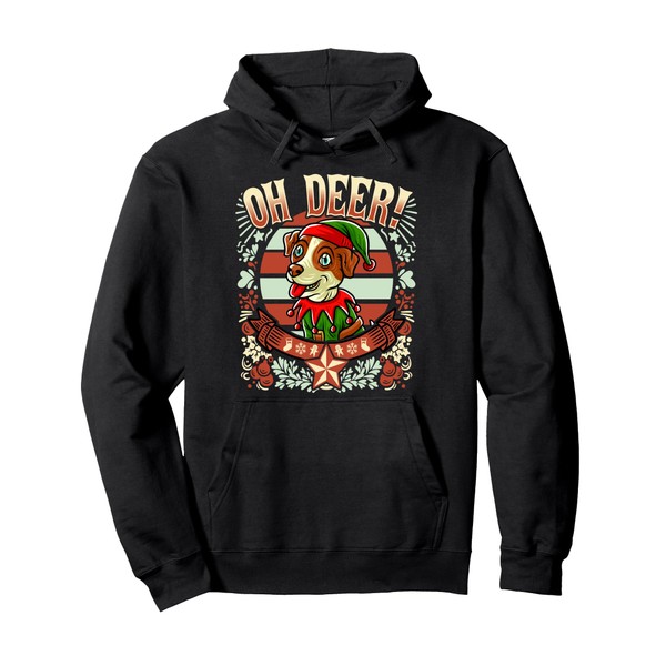 Jack Russell Terrier Oh Deer Christmas Dog Santa Claus Elf Pullover Hoodie