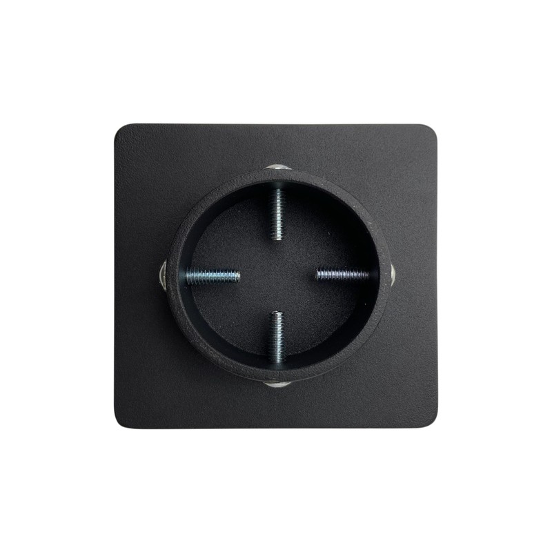 - 1/4" steel plate with rim to aid in centering the post, prevent the post from slipping off the jack, and to minimize any post base damage via load distribution. 3-5/8” square opening to fit the typical 4"x4" (nominal) post.