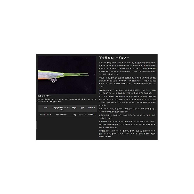 - Total Length: 2.6 inches (65 mm) (including tail: 3.8 mm) / Weight: 0.1 oz (3.8 g) / Type: Suspended