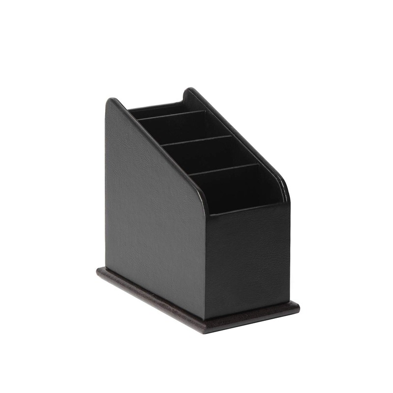 JackCubeDesign 4 Compartments Black Leather Remote Control Organiser Holder, Controller TV Guide, Media Storage Box - MK292A