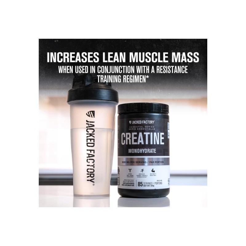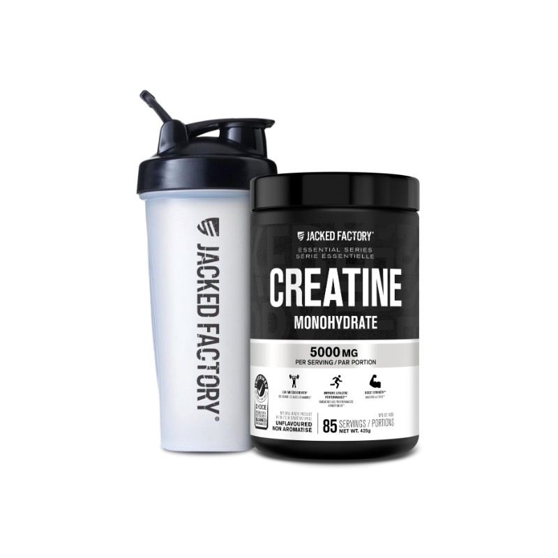 The Ultimate Creatine Starter Bundle: This exclusive Jacked Factory bundle includes a full-size 85 serving tub of Unflavored Creatine Monohydrate powder (5000mg per scoop), plus a Jacked Factory-branded shaker. Everything you need to fuel performance, support muscle growth, and mix your supplements with ease.