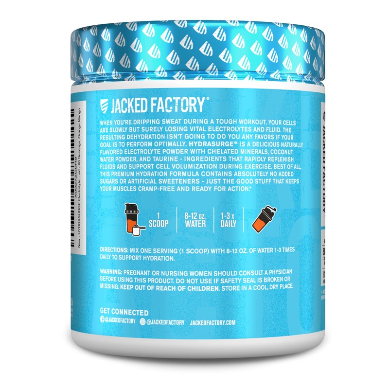 Jacked Factory Jacked Factory HYDRASURGE Electrolyte Powder - Hydration Supplement with Key Minerals, Himalayan Sea Salt, Coconut Water - Keto Friendly, Sugar Free, Naturally Sweetened - 60 Servings, Orange Mango