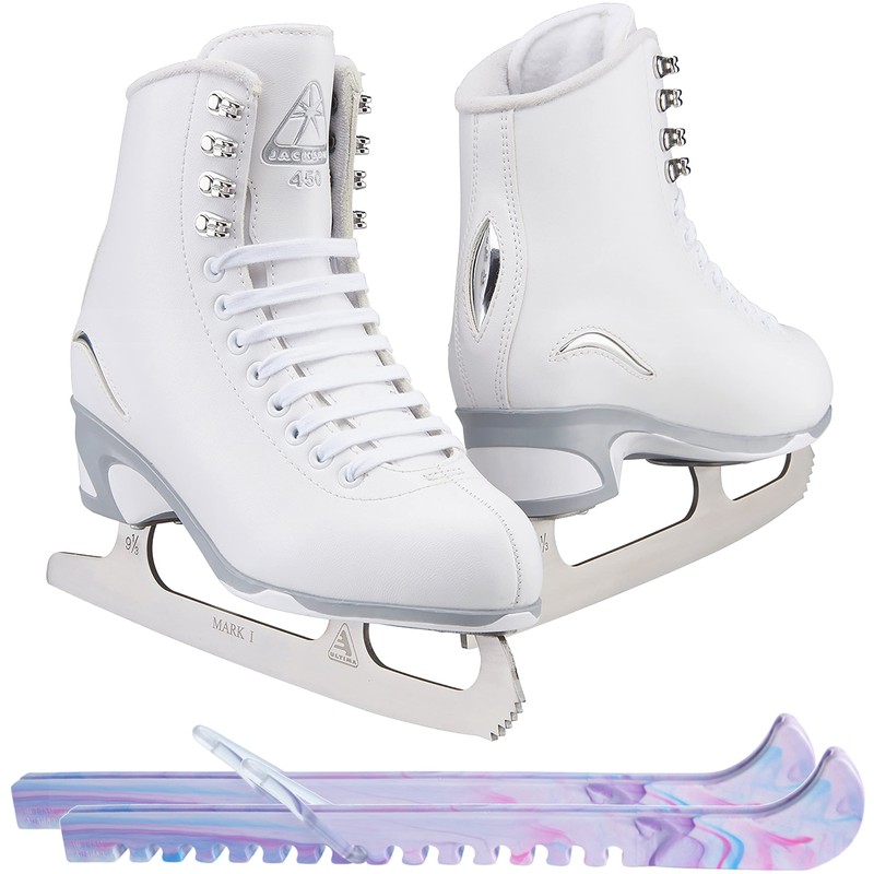 Jackson Ultima White Figure Ice Skates for Women/Adult 6 Bundle with Guardog Berry Blend Swirlz Skate Guards