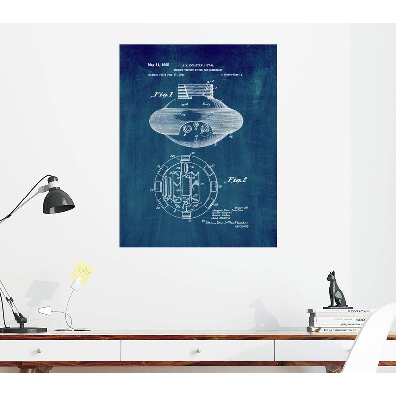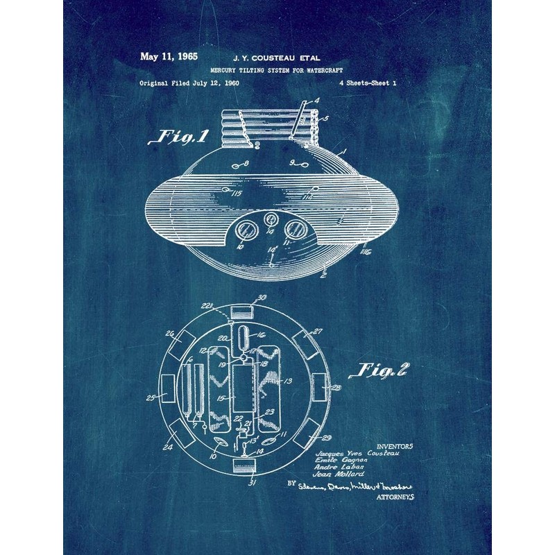 Jacques Cousteau Mercury Tilting System For Watercraft Patent Print Midnight Blue (16" x 20") M10441