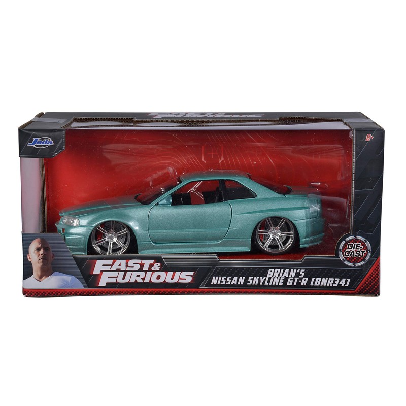 Jada Toys Fast & Furious Brian's Nissan Skyline 2002 GTR (R34) Opening Doors, Trunk & Bonnet Model Car Toy Car 1:24 Scale Silver