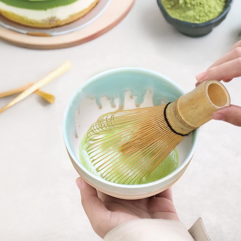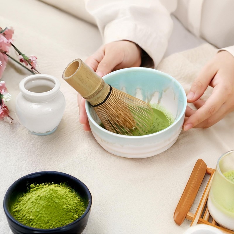 - Complete Matcha Whisk Set – This matcha set includes a handcrafted ceramic bowl, natural bamboo whisk (chasen), whisk holder, and bamboo scoop (chashaku), providing everything needed for an authentic Japanese tea ceremony.